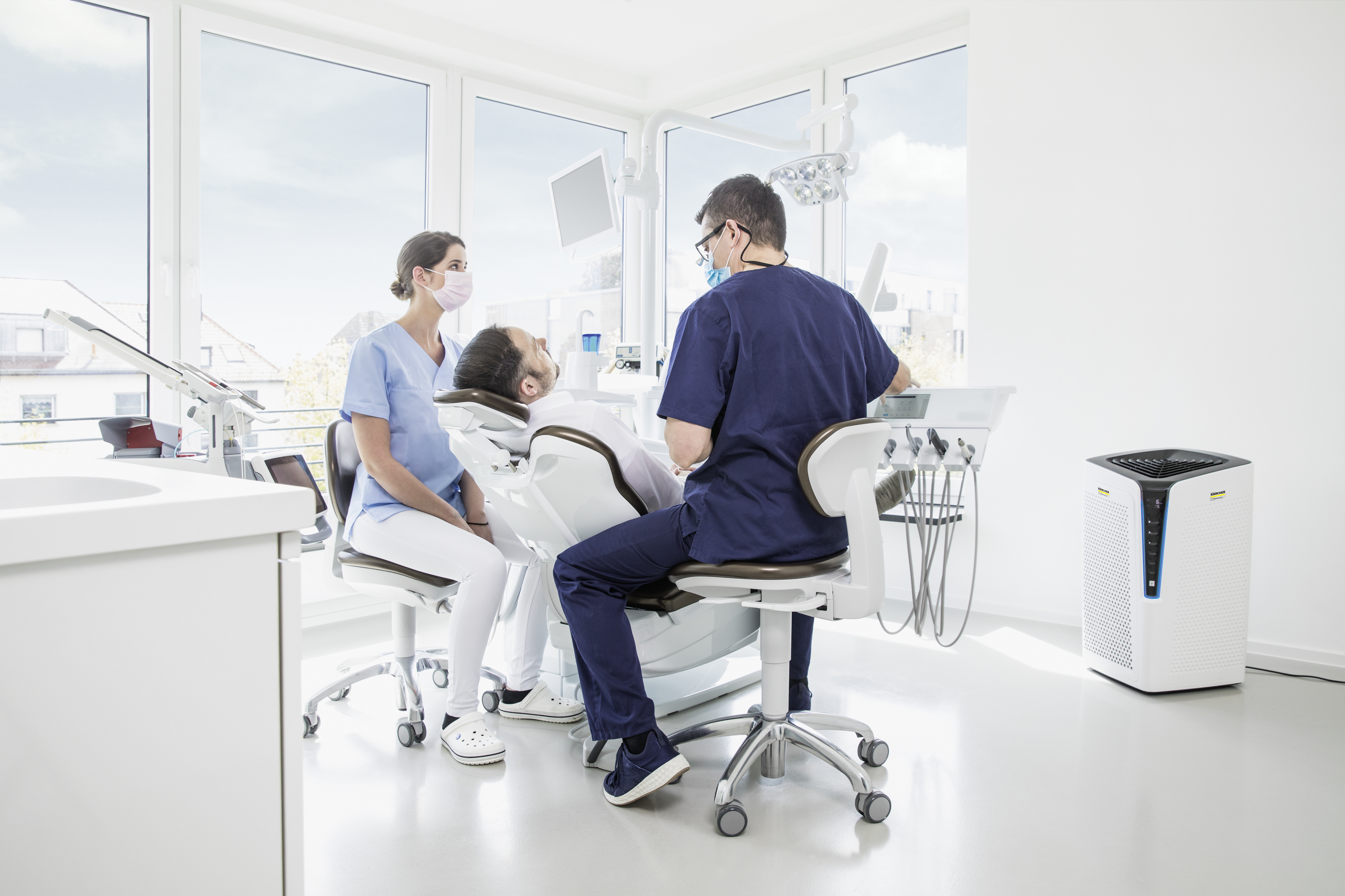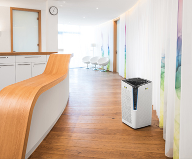 Poor quality air often leads to problems with concentration and discomfort. Caused by vapours from carpets, pollen, germs or bad air quality after a long meeting in the meeting room, this may lead to a lack of concentration, headaches, blocked noses and even asthma attacks. Allergy sufferers are particularly affected. Breathe easily again with our air purifier: once switched on, the Kärcher AF 100 air purifier removes allergens and harmful substances from the air.