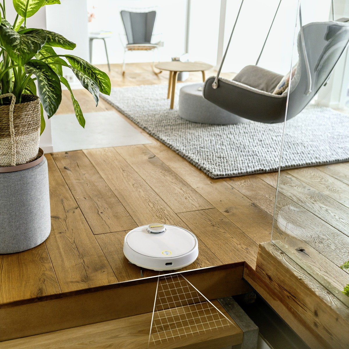 The smart RCV 3 with precise LiDAR navigation and convenient app control cleans low-pile carpets and hard surfaces fully autonomously and systematically. Hard surfaces can also be wiped when wet.