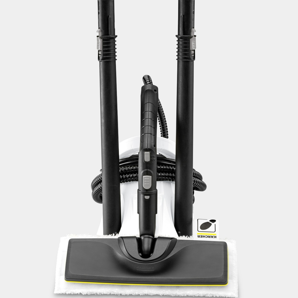 * Through spot cleaning using the Kärcher steam cleaner, i.e. steaming for 30 seconds on the maximum steam setting in direct contact with the surface to be cleaned, 99.999% of enveloped viruses such as influenza viruses (except the hepatitis B virus) can be eliminated on most smooth, hard surfaces in the house (test germ: modified vaccinia Ankara virus).