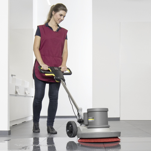 Our very robust single-disc machine BDS 43/150 C Classic offers an excellent price-performance ratio and is very versatile for thorough floor cleaning. With a powerful 1,500 watt motor, it is suitable for both hard and resilient floors and textile coverings as well as for sanding worn parquet floors. With a working width of 430 mm, it is ideal for most applications in the area of building cleaning, whilst the maintenance-free planet carrier made with hard-wearing metal gears ensures a long lifetime and far less wear and lower maintenance costs compared to a belt gear. A pad drive board is also included in delivery.